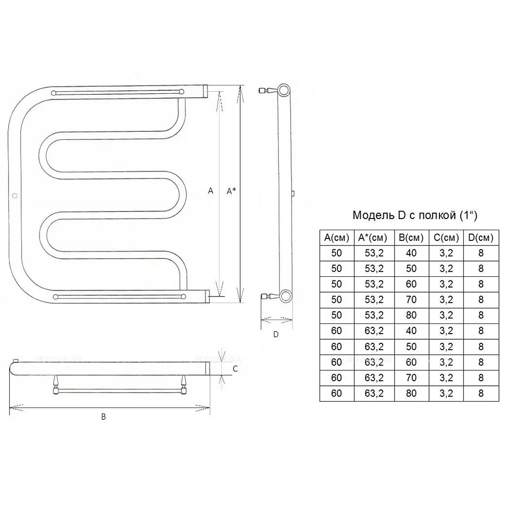 Полотенцесушитель водяной ДВИН D 60/60 c полкой 1″-1/2″ К0 полированный 4627086011797