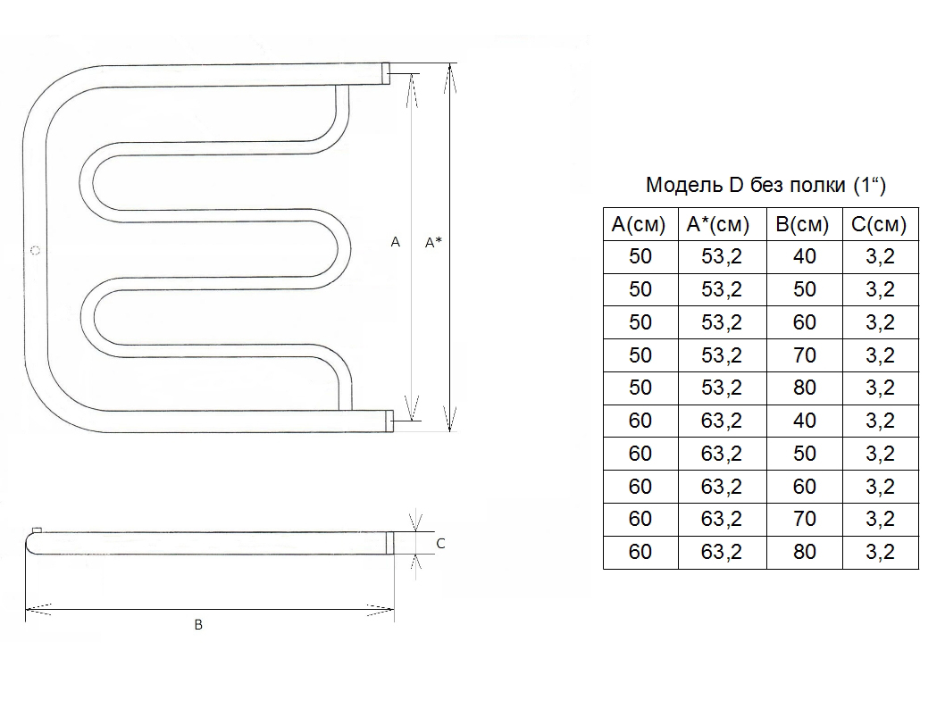 Полотенцесушитель водяной ДВИН D фокстрот 50/50 без полки, полированный 4627085890232
