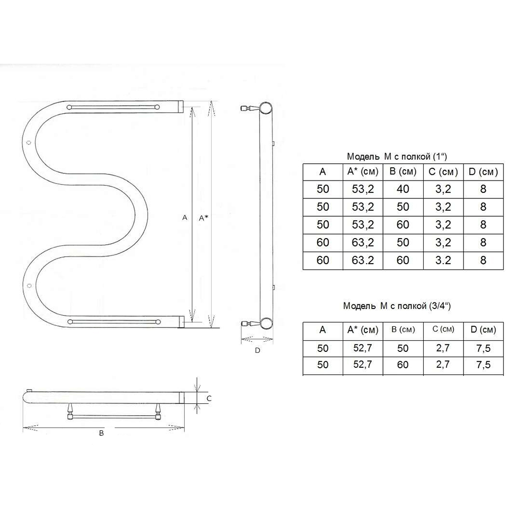Полотенцесушитель водяной ДВИН M 50/40 c полкой 1″ К0 Полированный 4627086043484