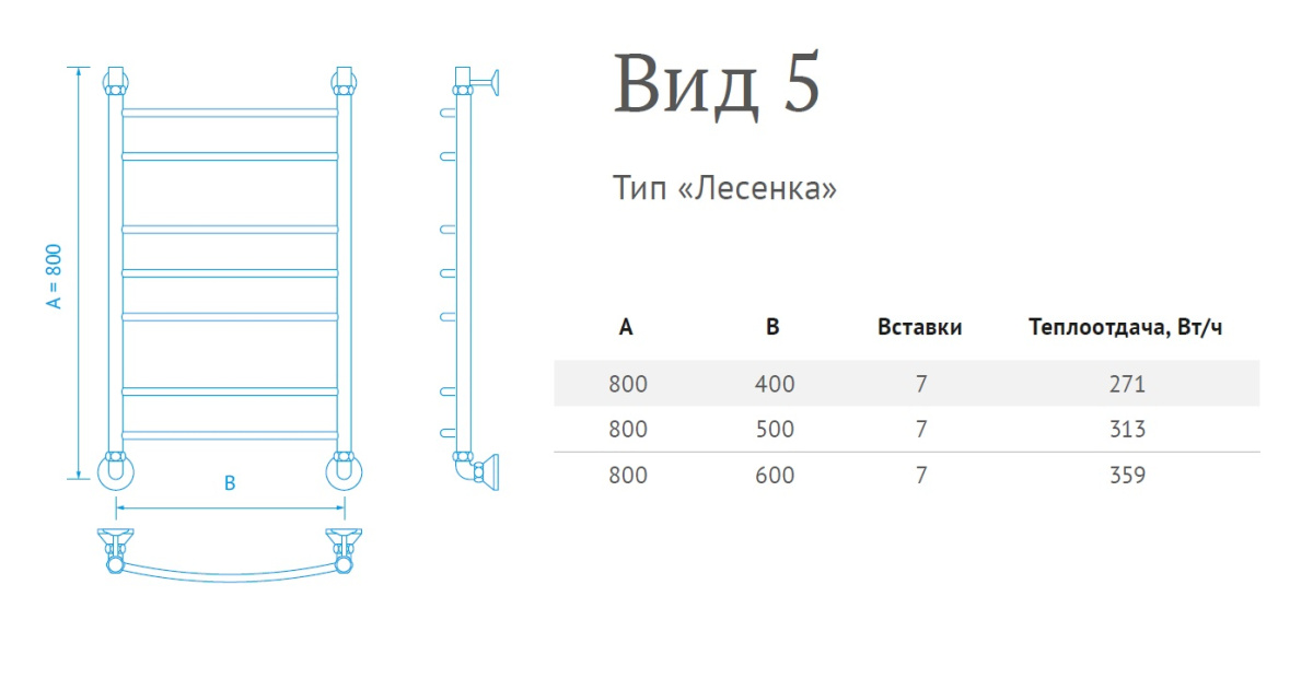 Полотенцесушитель водяной Маргроид Лесенка “Вид 5” без полки 80х50, хром B5 80*50