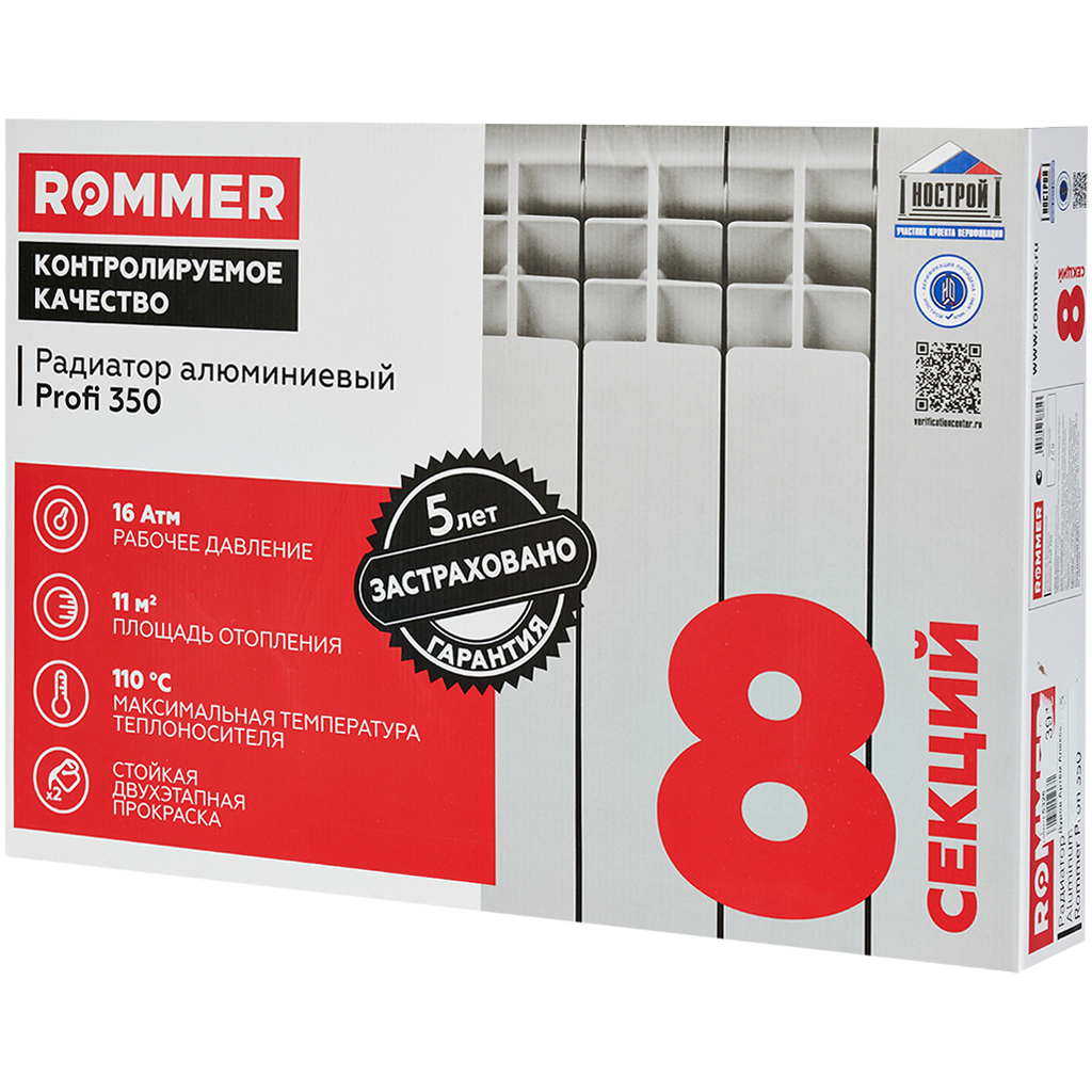 ROMMER Profi 350 (AL350-80-80-080) 8 секций радиатор алюминиевый (RAL9016)