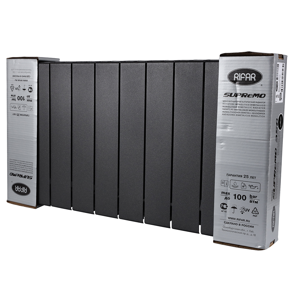 RIFAR SUPReMO 350 10 секций радиатор биметаллический боковое подключение (Цвет АНТРАЦИТ) Сертификаты Сертификат официального дилера Rifar (pdf