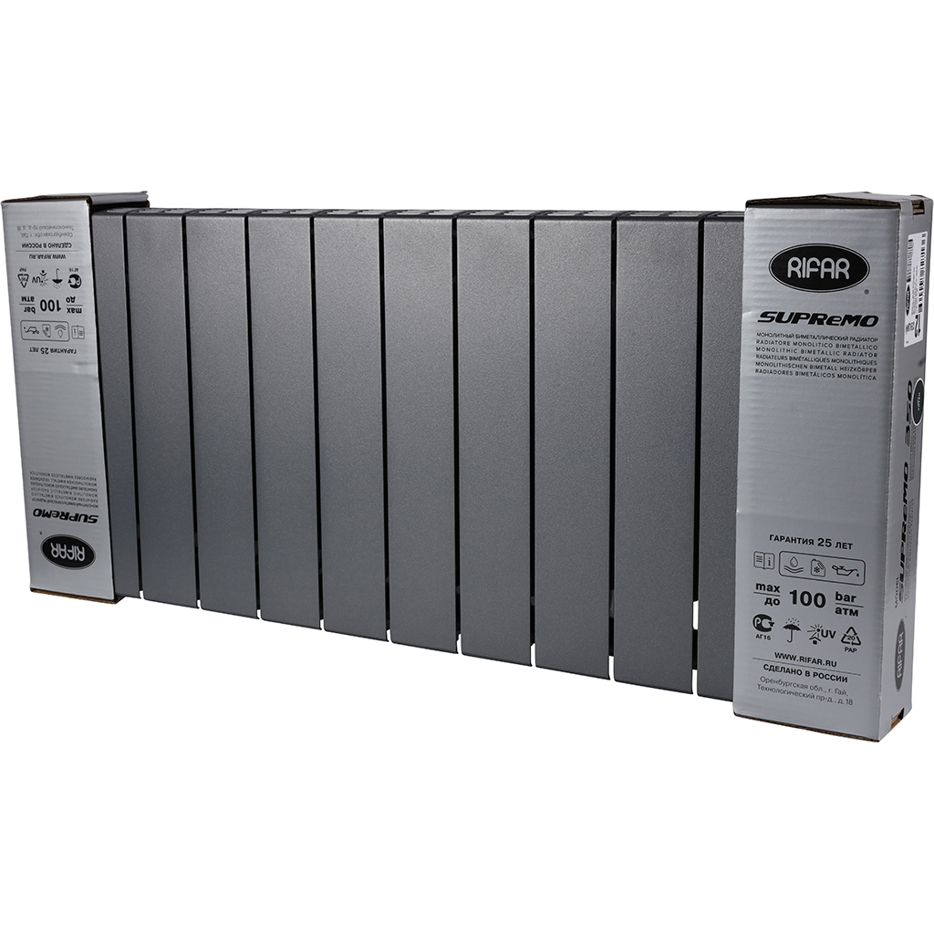 RIFAR SUPReMO 350 12 секций радиатор биметаллический боковое подключение (Цвет ТИТАН) 4RS35-12-TI
