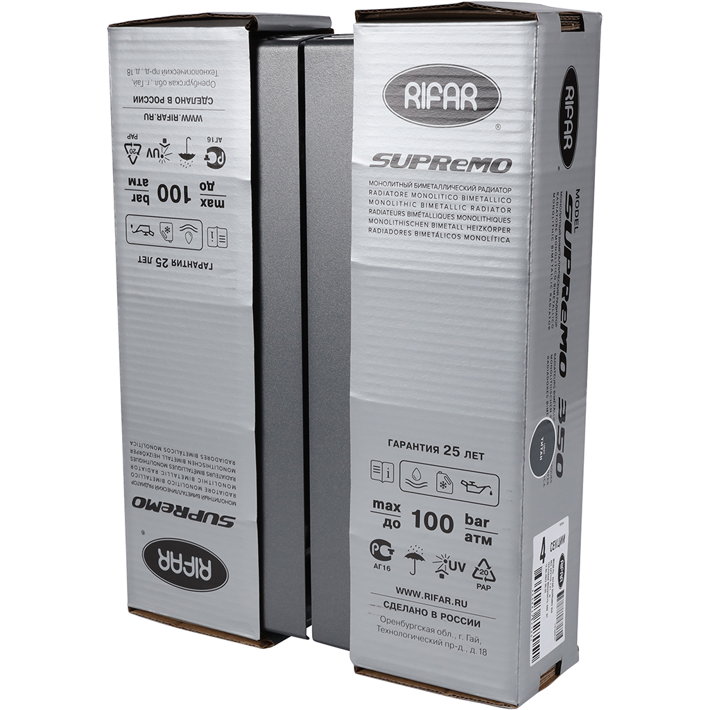 RIFAR SUPReMO 350 4 секций радиатор биметаллический боковое подключение (Цвет ТИТАН) Сертификаты Сертификат официального дилера Rifar (pdf, 3.