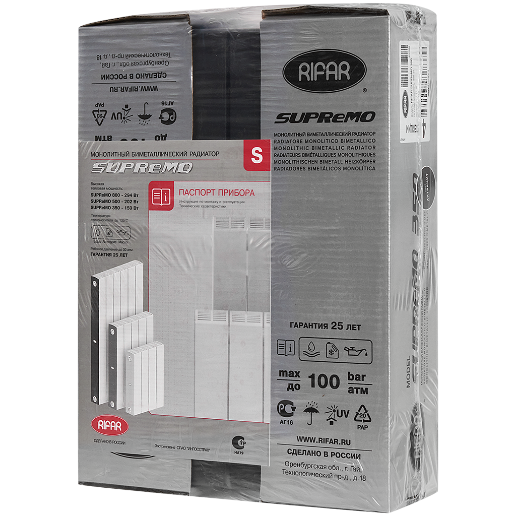 RIFAR SUPReMO 350 4 секций радиатор биметаллический боковое подключение (Цвет АНТРАЦИТ) 4RS35-4-AN