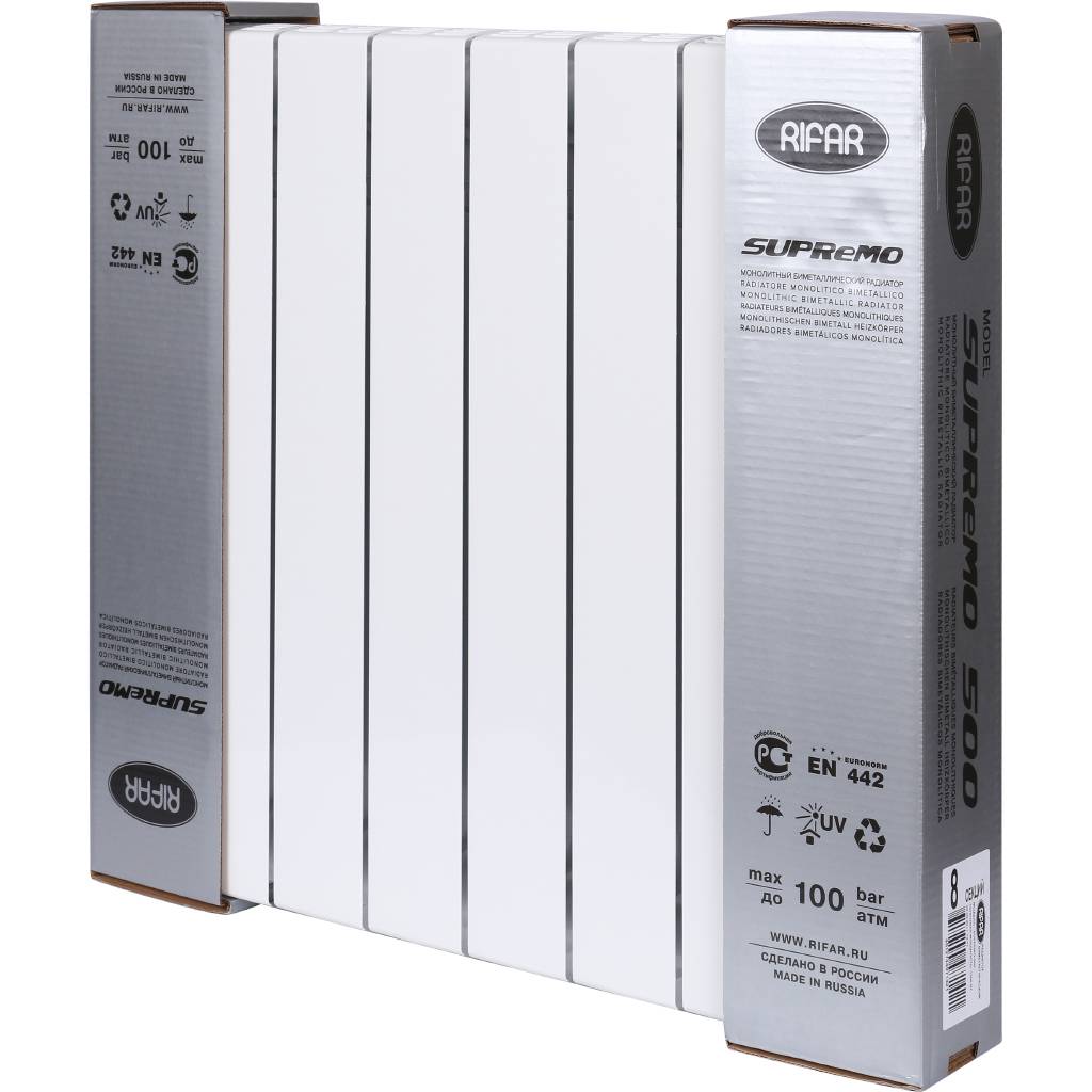 RIFAR SUPReMO 500 8 секций радиатор биметаллический боковое подключение (белый RAL 9016)