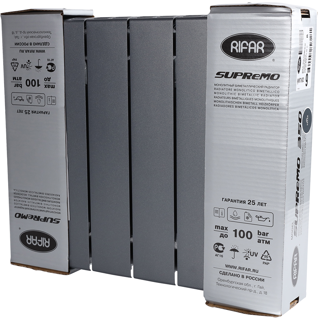 RIFAR SUPReMO VENTIL 350 SVR 6 секций радиатор биметаллический нижнее правое подключение (Цвет ТИТАН) Сертификаты Сертификат официального дилера Rifar