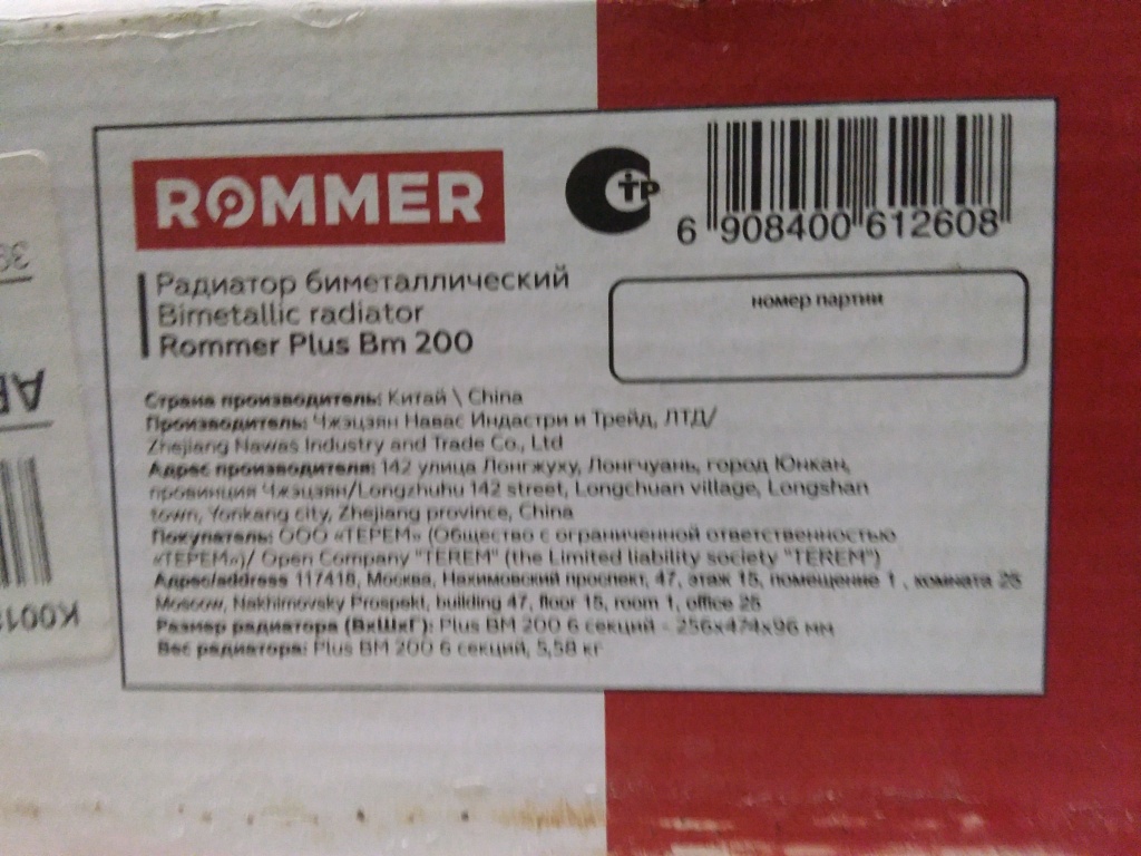 ROMMER Plus BM 200 6 секций радиатор биметаллический (RAL9016)