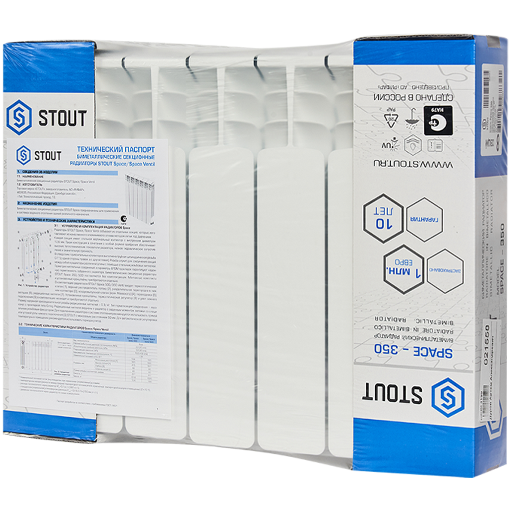 SRB-0310-035006 STOUT Space 350 6 секций радиатор биметаллический боковое подключение RAL9016
