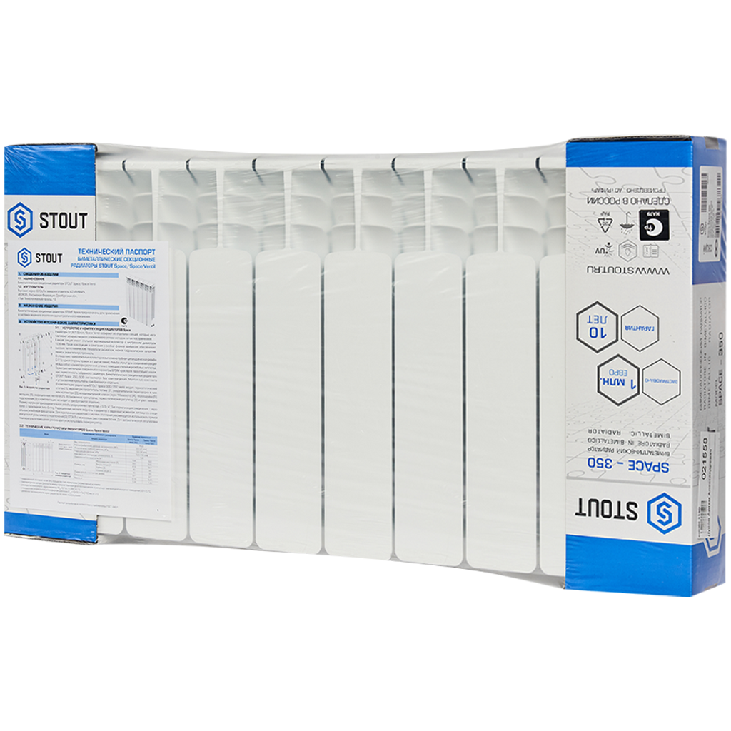 SRB-0310-035010 STOUT Space 350 10 секций радиатор биметаллический боковое подключение RAL9016