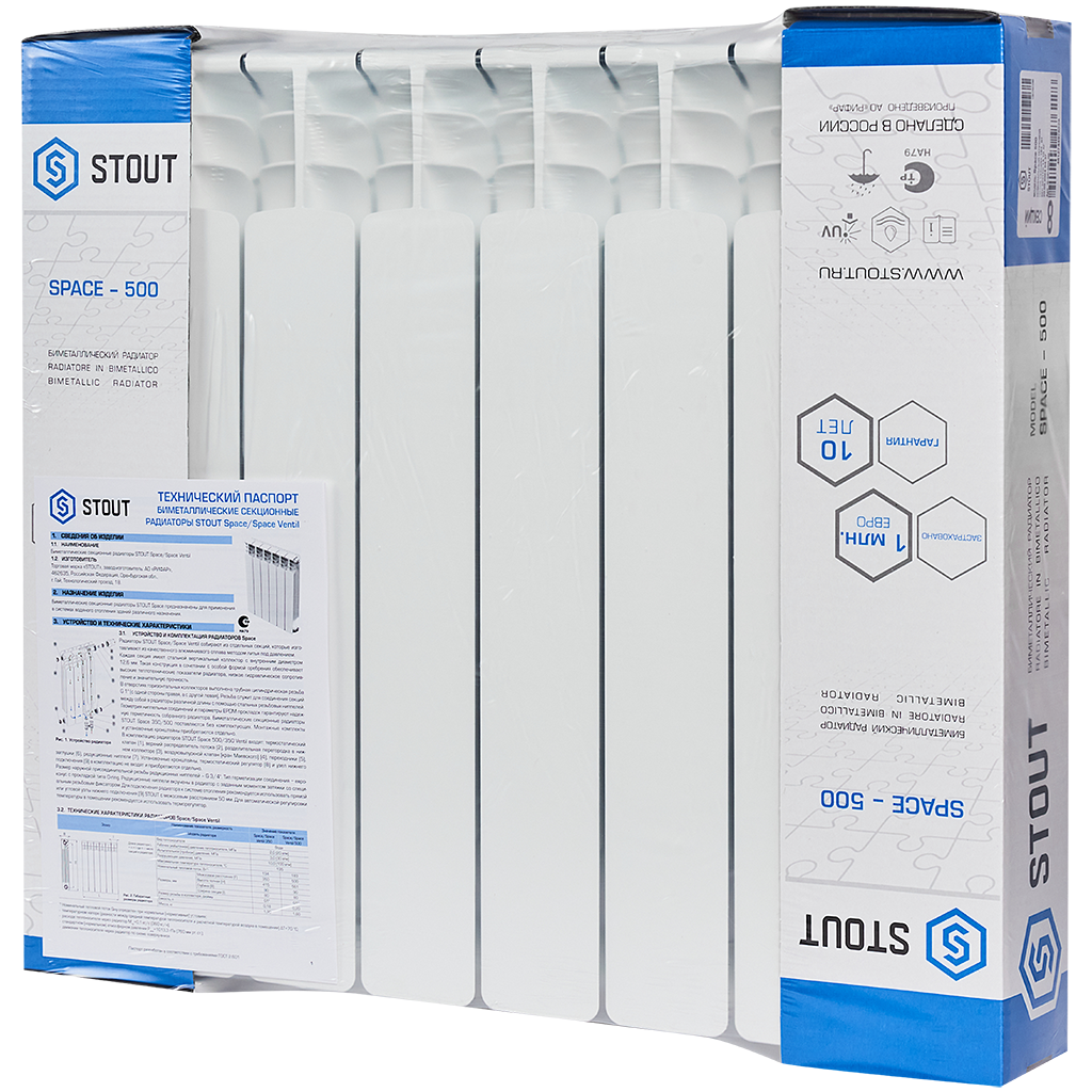 SRB-0310-050008 STOUT Space 500 8 секций радиатор биметаллический боковое подключение RAL9016