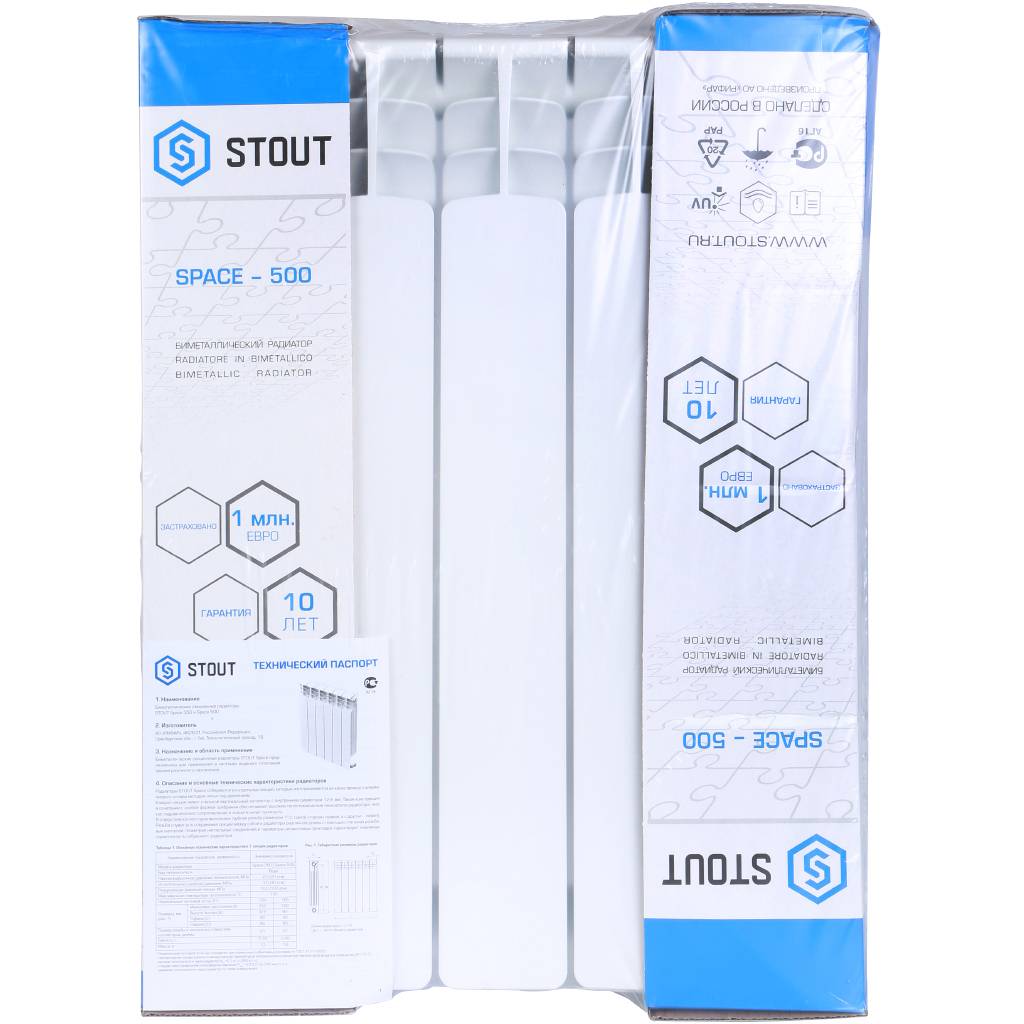 SRB-0320-050005 STOUT Space 500 5 секций радиатор биметаллический нижнее правое подключение RAL9016