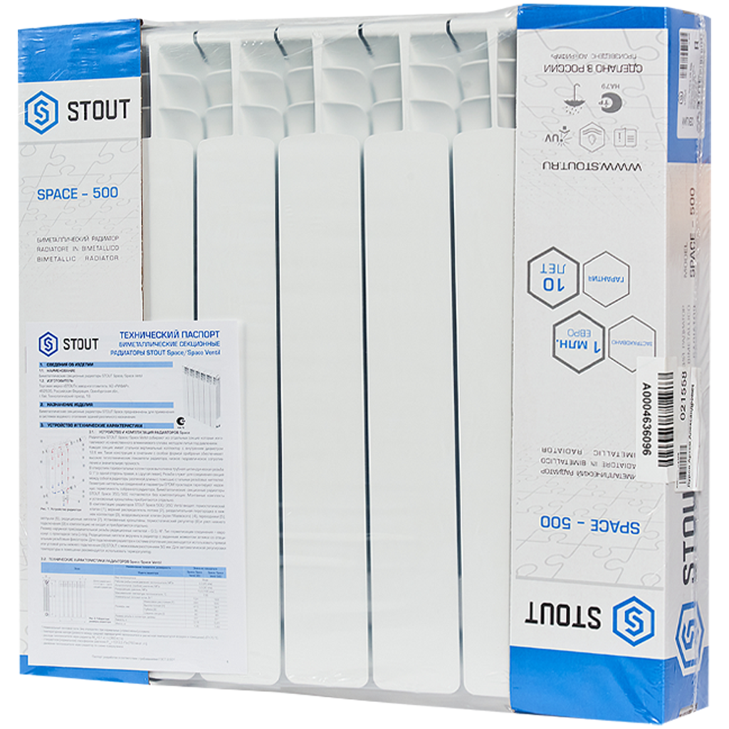 SRB-0320-050006 STOUT Space 500 6 секций радиатор биметаллический нижнее правое подключение RAL9016