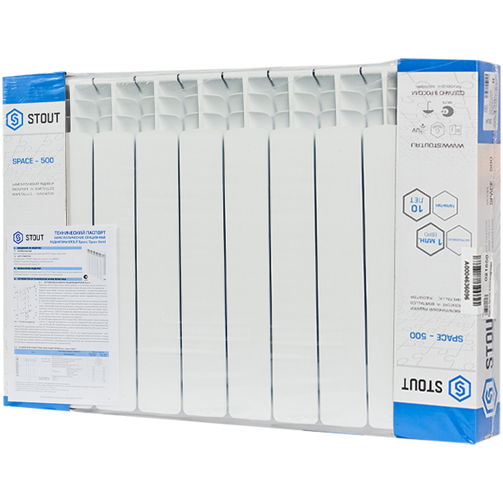 SRB-0320-050010 STOUT Space 500 10 секций радиатор биметаллический нижнее правое подключение RAL9016