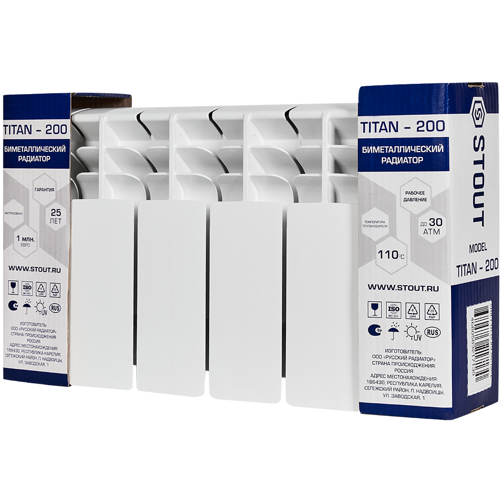 SRB-3310-020006 STOUT TITAN 200 6 секций радиатор биметаллический боковое подключение (белый RAL 9016)