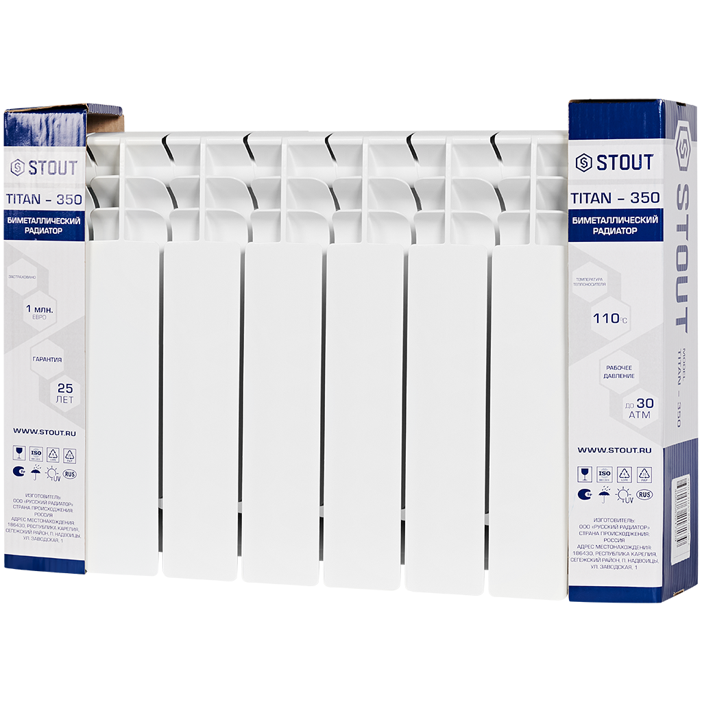 SRB-3310-035007 STOUT TITAN 350 7 секций радиатор биметаллический боковое подключение (белый RAL 9016)