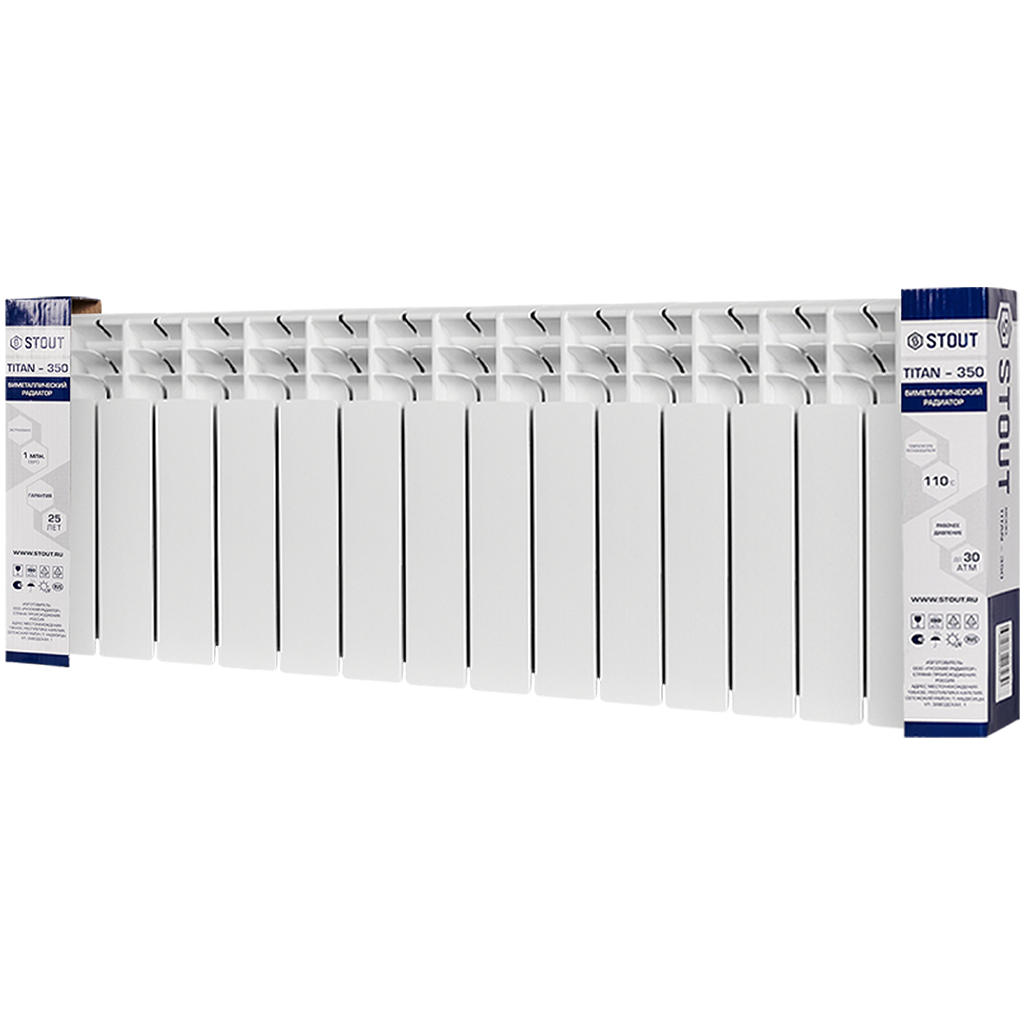 SRB-3310-035014 STOUT TITAN 350 14 секций радиатор биметаллический боковое подключение (белый RAL 9016)