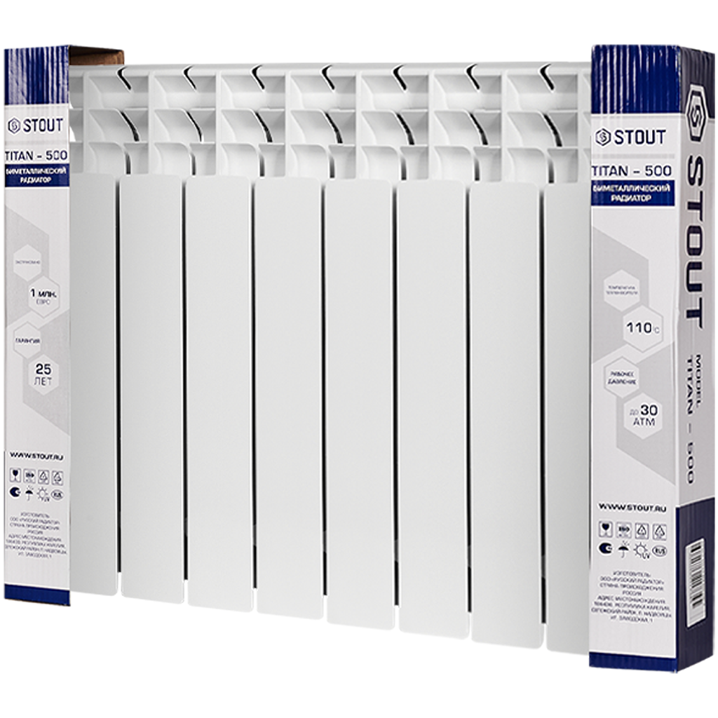 SRB-3310-050008 STOUT TITAN 500 8 секций радиатор биметаллический боковое подключение (белый RAL 9016)