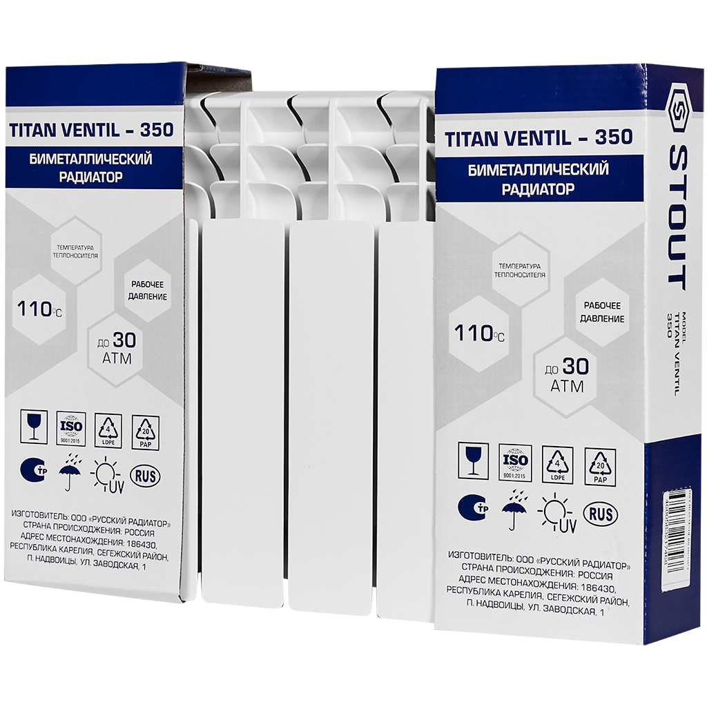 SRB-3320-035006 STOUT TITAN VENTIL 350 6 секций радиатор биметаллический нижнее правое подключение (белый RAL 9016)