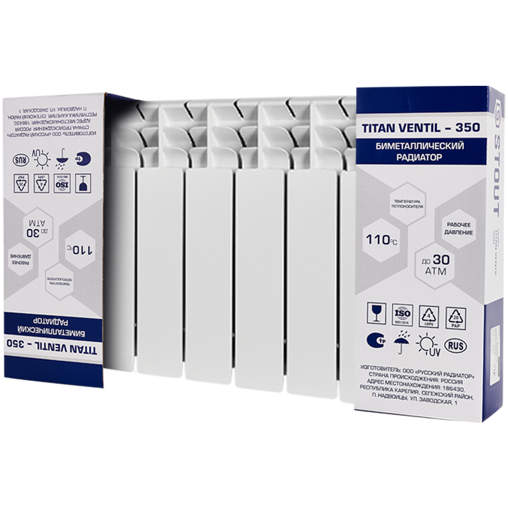 SRB-3320-035009 STOUT TITAN VENTIL 350 9 секций радиатор биметаллический нижнее правое подключение (белый RAL 9016)