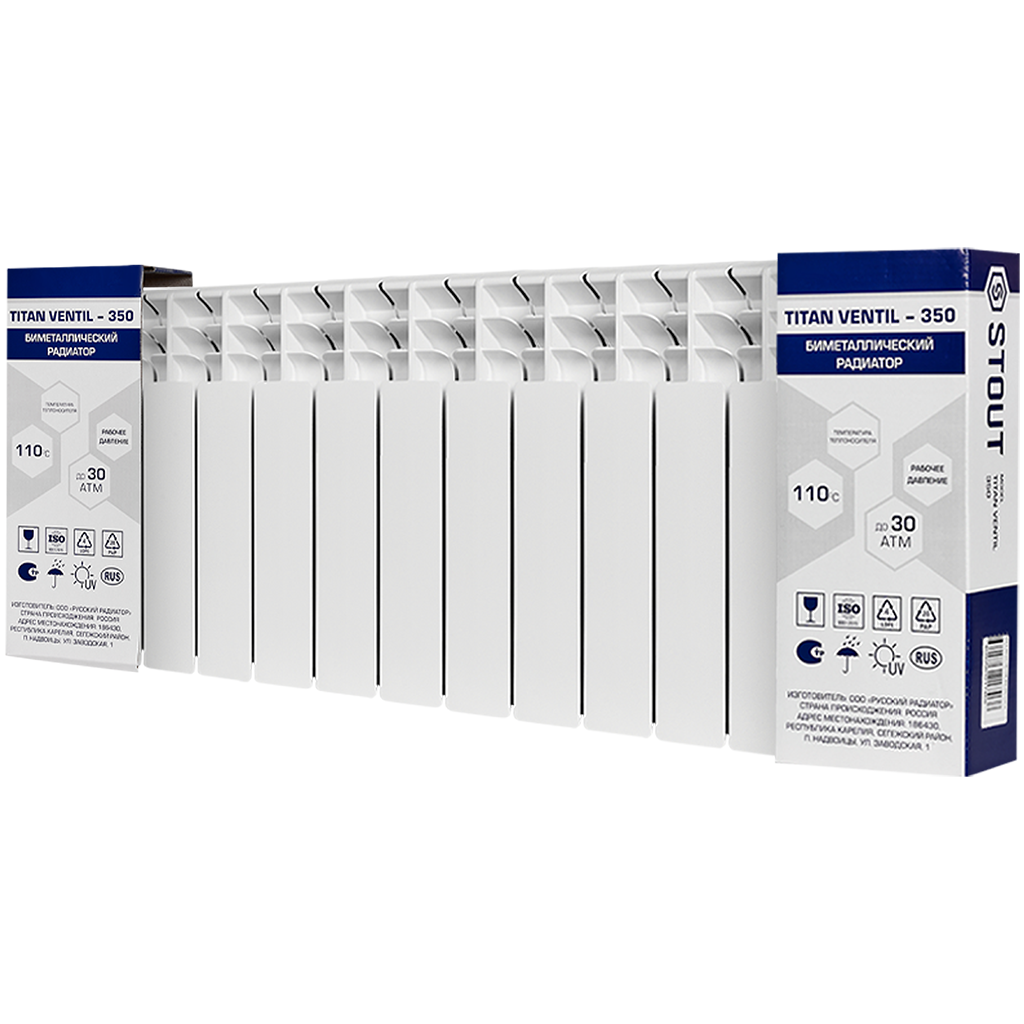 SRB-3320-035012 STOUT TITAN VENTIL 350 12 секций радиатор биметаллический нижнее правое подключение (белый RAL 9016)