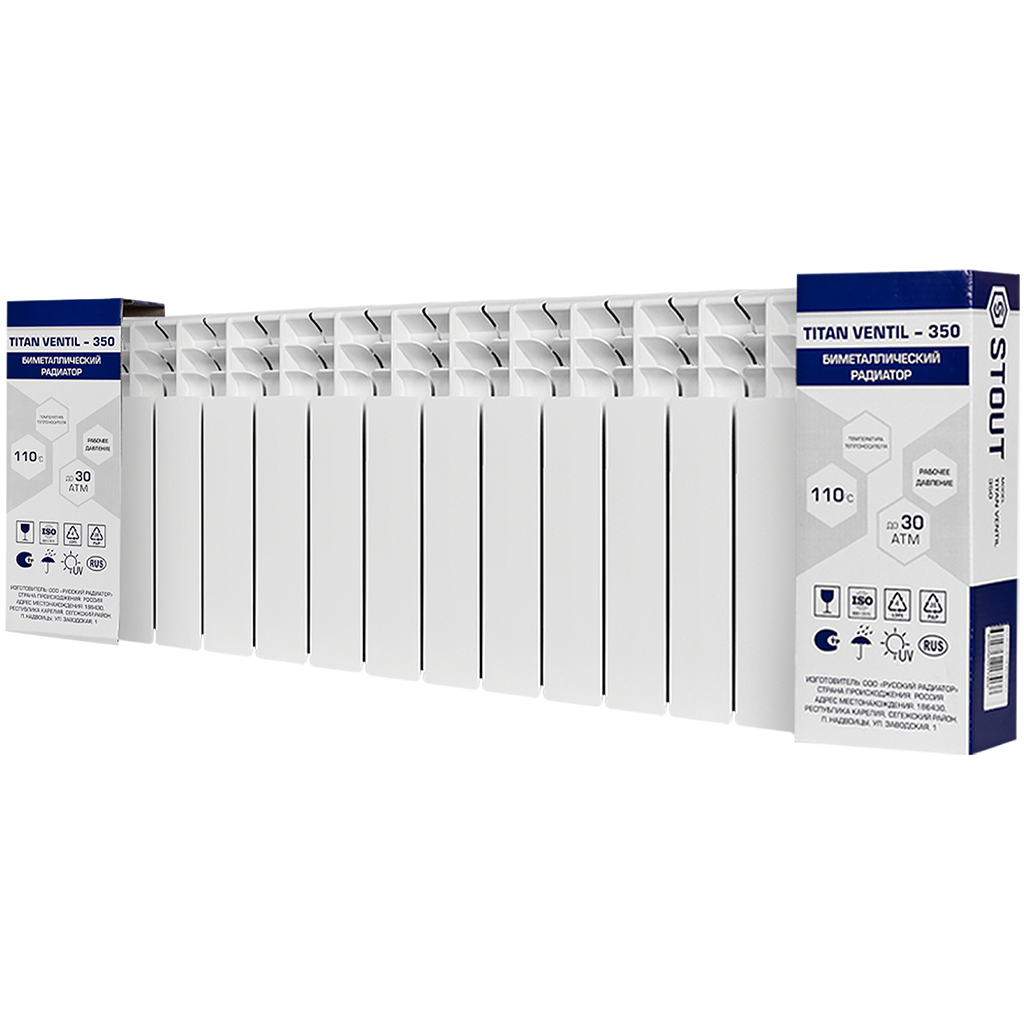 SRB-3320-035014 STOUT TITAN VENTIL 350 14 секций радиатор биметаллический нижнее правое подключение (белый RAL 9016)