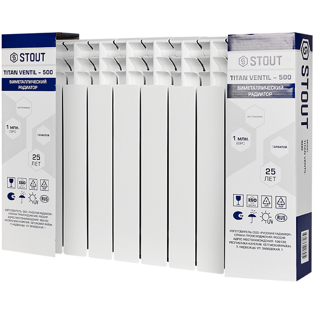SRB-3320-050008 STOUT TITAN VENTIL 500 8 секций радиатор биметаллический нижнее правое подключение (белый RAL 9016)