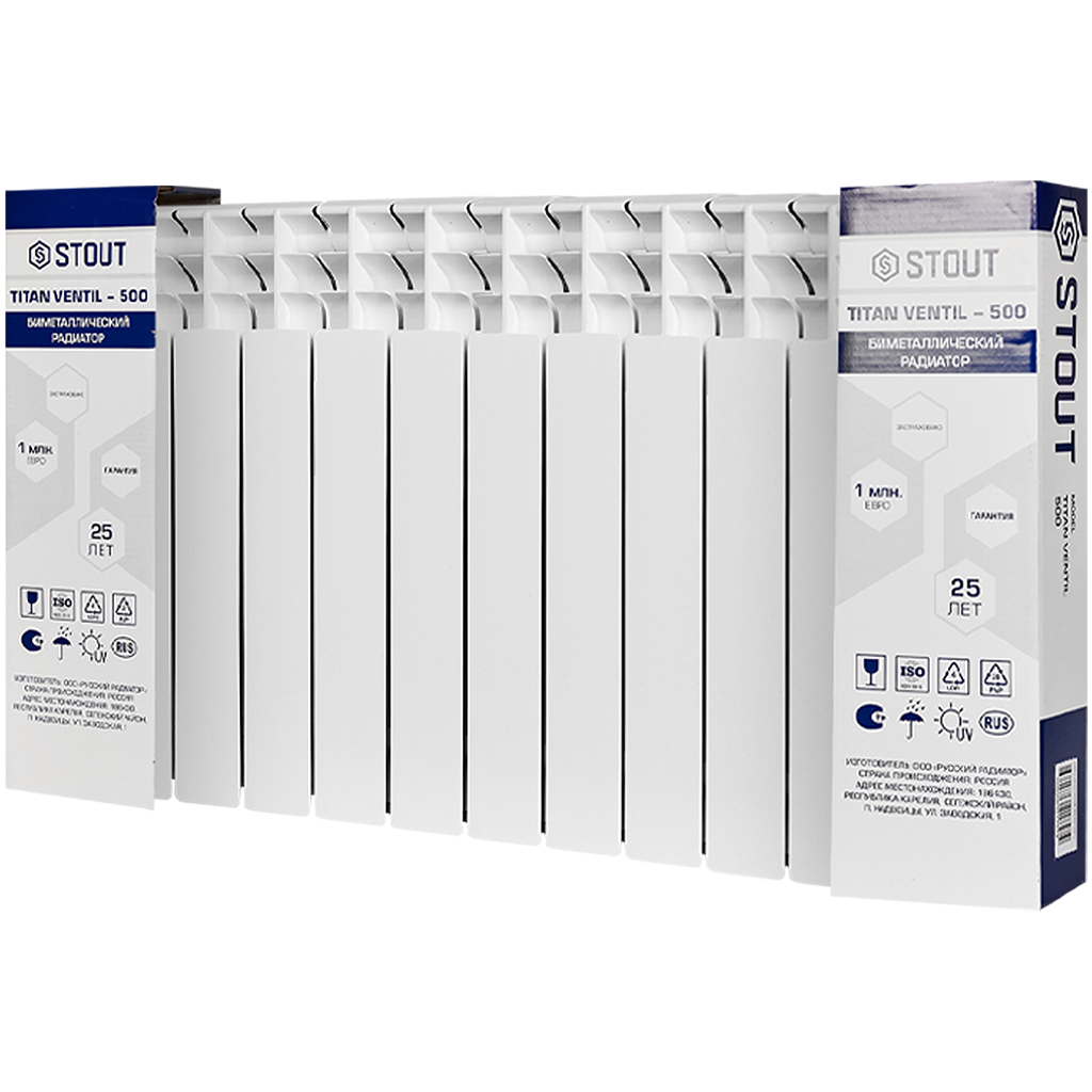 STOUT TITAN VENTIL 500 11 секций радиатор биметаллический нижнее правое подключение (белый RAL 9016) SRB-3320-050011