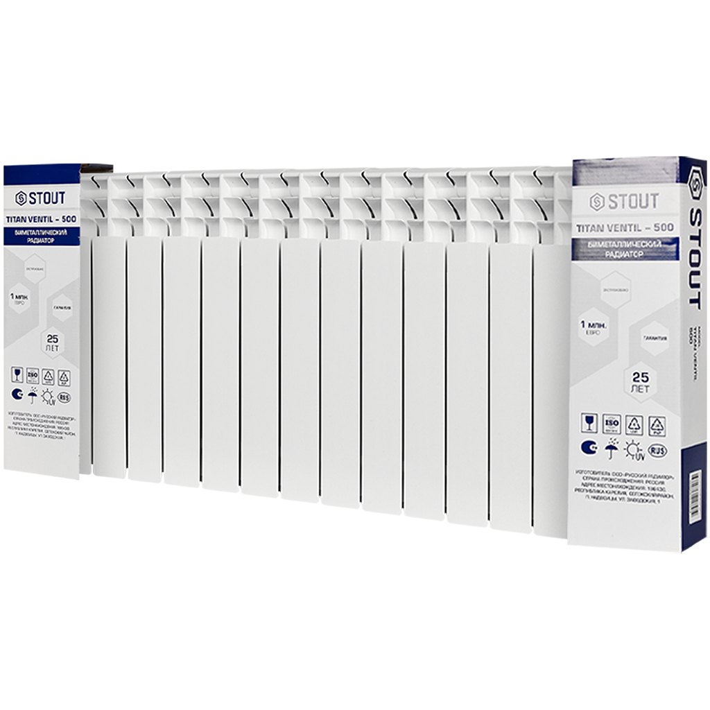 SRB-3320-050014 STOUT TITAN VENTIL 500 14 секций радиатор биметаллический нижнее правое подключение (белый RAL 9016)