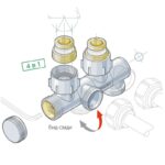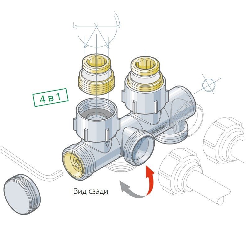 F12004 Meibes Узел нижнего подключения FE2, двухтрубное подключение, с функцией отсечки, слива и наполнения 3/4” Остатки F12004 Meibes Узел нижнего