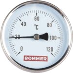 RIM-0001-807515 ROMMER Термометр биметаллический с погружной гильзой. Корпус Dn 80 мм, гильза 75 мм 1/2 , 0…120°С