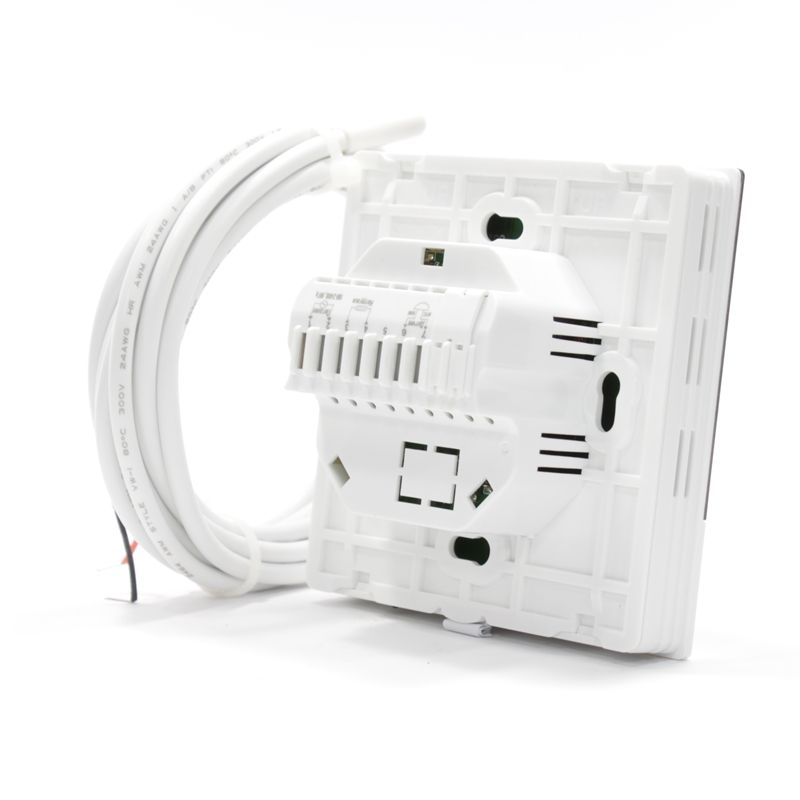 Встраиваемый программируемый термостат для электрического теплого пола. Питание от сети 220 В. Контакты реле до 16 А. Температура регулировки пола 5…70°С. Температура регулировки воздуха 5…35°С. Точность измерения 0,1°С. Встраиваемый корпус в подрозетник. Большой LCD дисплей. Калибровка температуры. Установка индивидуальной программы для каждого дня недели. Установка ограничения максимальной и минимальной температуры. Установка яркости дисплея. Функция «умного» восстановления.