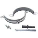 Сантехнический хомут — самый популярный вид крепежа для всех видов труб, состоит из двух частей, изготовленных путем штамповки, соединяемых между собой винтами и имеющими резиновый уплотнитель, для предупреждения вибрации и звукоизоляции.