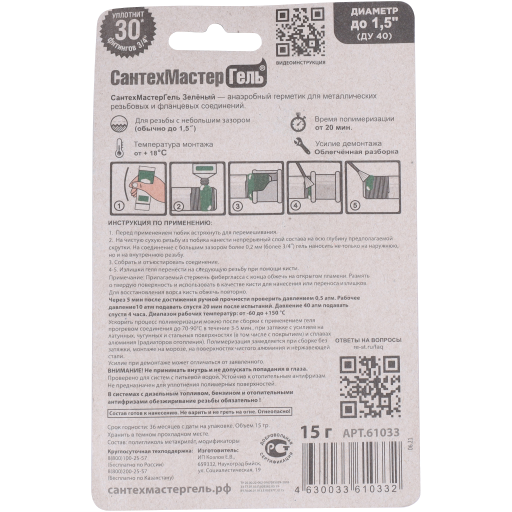 СантехМастерГель Сантехмастер Гель Зеленый,тюбик 15 гр, блистер 61033