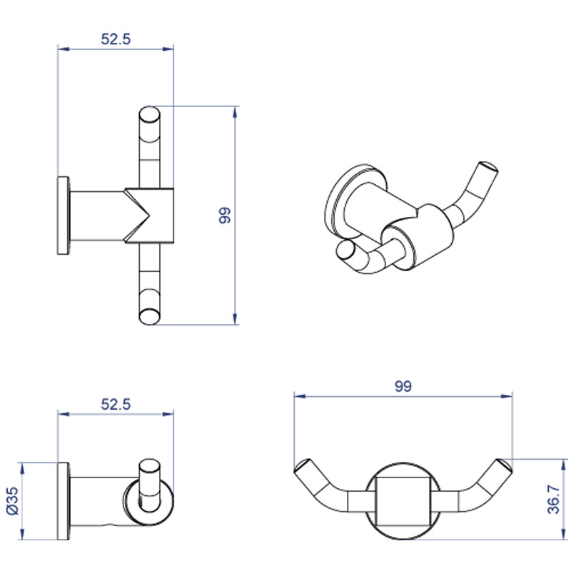 Крючок двойной AZARIO FORNY, хром AZ-88305
