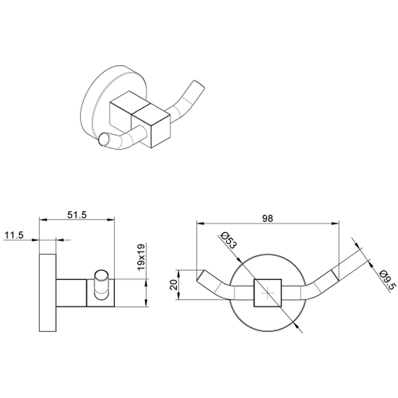 Крючок двойной AZARIO NESSY, хром AZ-73105