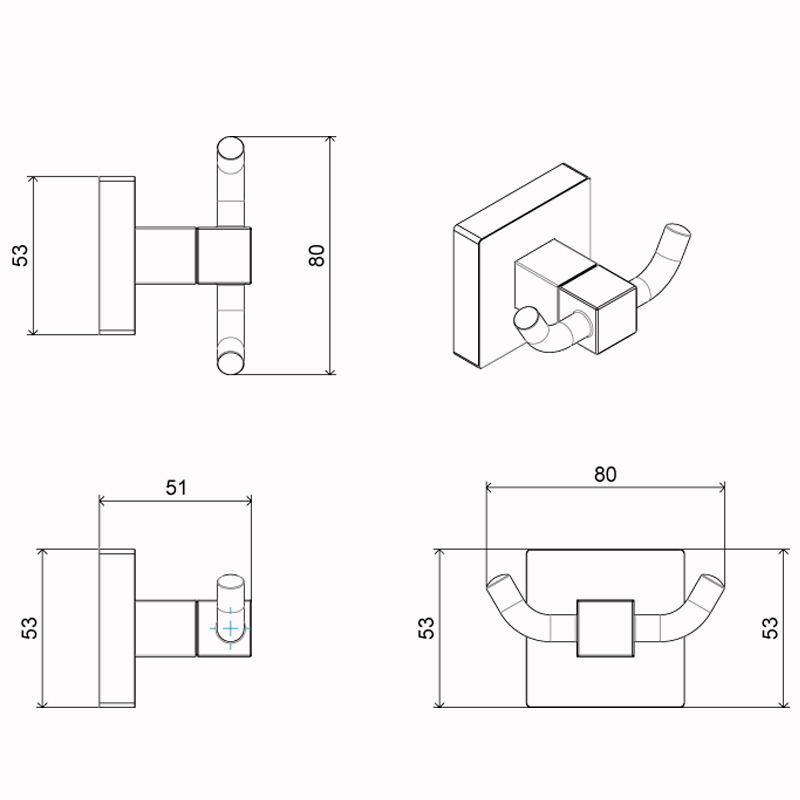 Крючок двойной AZARIO RINA, хром AZ-87005B