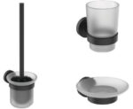 Набор аксессуаров IOM, состоящий из: A9119XG IOM Туалетная щетка с держателем, для настенного монтажа, матовое стекло, с крепежом; A9120XG IOM Стакан с держателем, матовое стекло, с крепежом; A9122XG IOM Мыльница с держателем, матовое стекло, с крепежом
