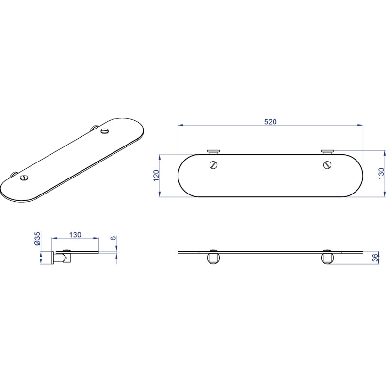 Полка AZARIO FORNY стеклянная 52 см, хром AZ-88303