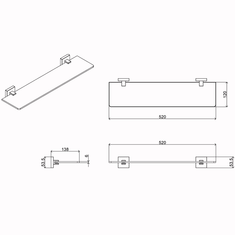 Полка AZARIO RINA стеклянная 52 см AZ-87003