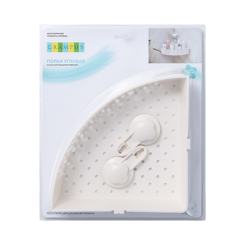 Полочка угловая Fixsen Grampus одноэтажная, пластик, белая GR-7086