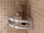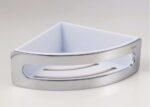 Угловая корзинка для губки из 2 частей: металлическая корзинка и вынимающаяся, небьющаяся, стойкая к мыльному налету и невосприимчивая к воздействию ультрафиолетовых лучей пластиковая  вставка