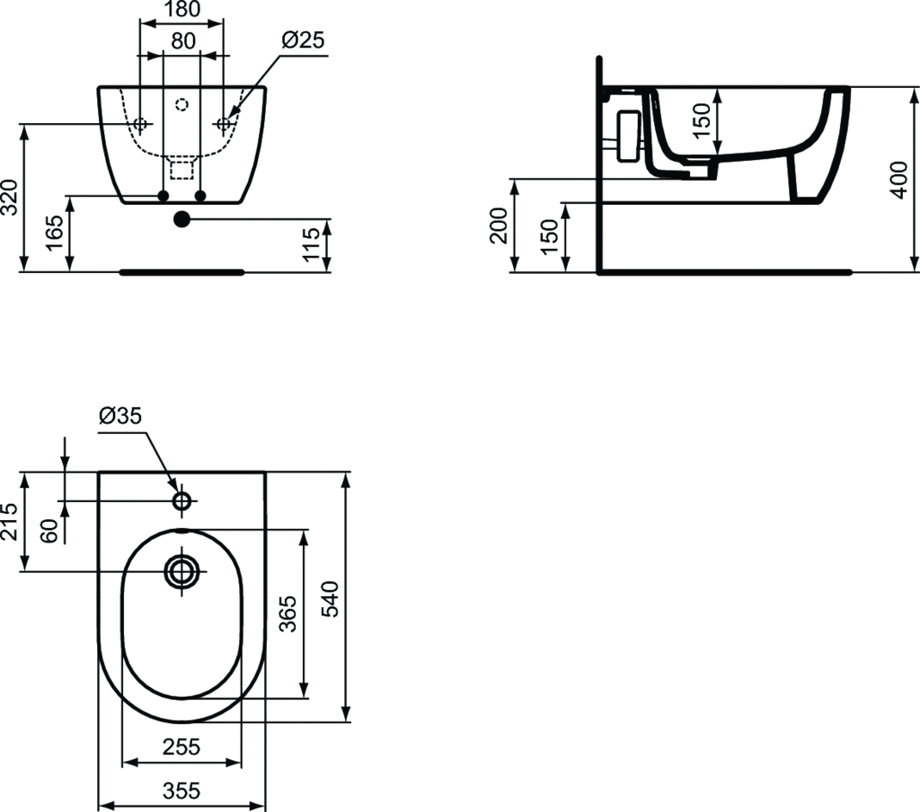 Биде подвесное Ideal Standard BLEND CURVE 355х540х250 белый T375001
