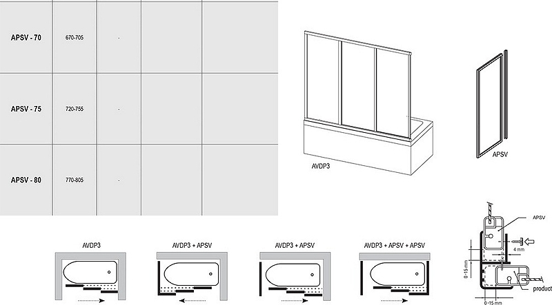 Боковая стенка шторки на ванну Ravak APSV-80, профиль белый, витраж полистирол рейн 9504010241