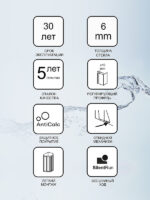 Витраж: безопасное стекло Transparent (прозрачное) толщиной 6 мм с покрытием AntiCalc для защиты стекла от отложений водного камня.