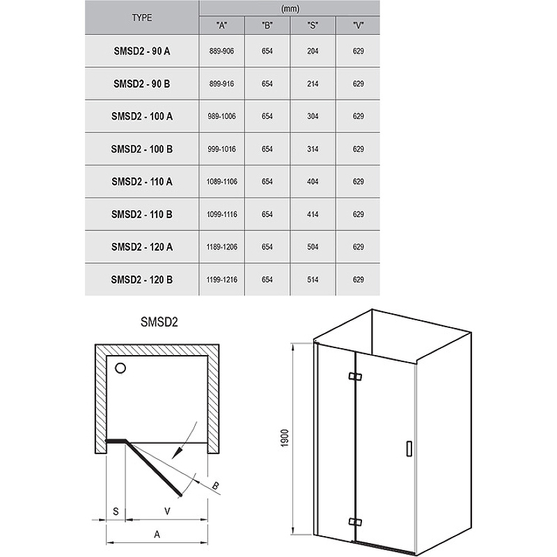 Душевая дверь Ravak Smartline SMSD2-100 A L 0SLAAA00Z1.