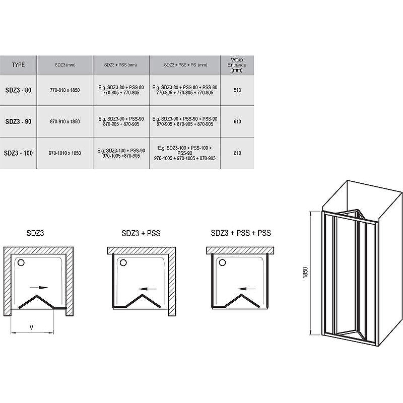 Душевая дверь Ravak Supernova SDZ3-100 02VA0100Z1.