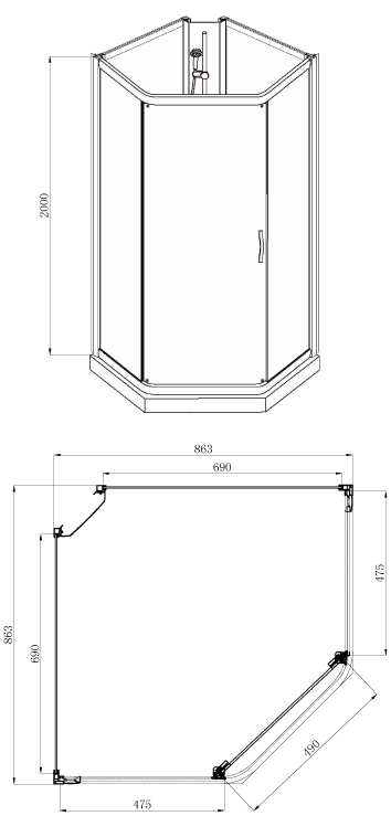 Душевая кабина AZARIO DENVER 90х90х200 серое стекло 4 мм. с покрытием Easy Clean, задняя панель черн AZ-N10806 900 GREY