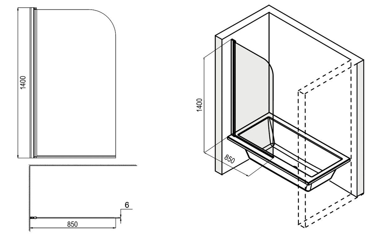 Душевая шторка для ванны Loranto стекло 6мм, размер 85х140 см, профиль хром CS-L1485
