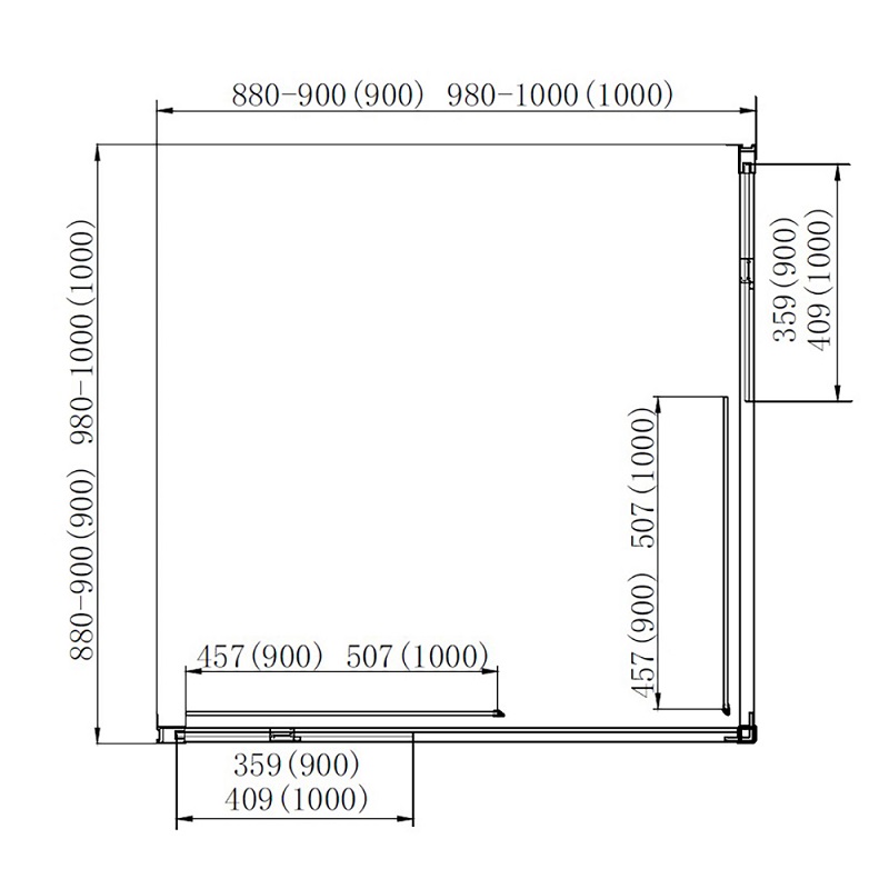 Душевое ограждение AZARIO 1000х1000х2000, БЕЗ ПОДДОНА, прозрачное стекло 6 мм, цвет профиля черный AZ-ND1142 1000 Black